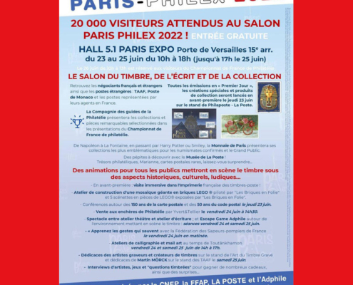 The French Federation of Philatelic Associations (FFAP) in cooperation with Phil@poste and l'ADPhile organises each year a major philatelic promotional event known as "Fête du Timbre ©" (formerly called "Journée du Timbre").