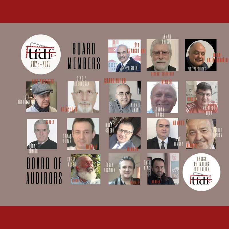 The Federation of Turkish Philatelic Societies‘ current Board of Directors was unanimously re-elected for the 2025–2027 term during the election held on 22 November 2025.